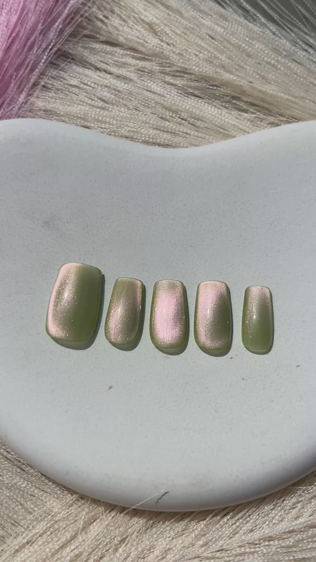 6. Hold the press-on at a 45Β° angle from the cuticle, gently slide it toward the cuticle, press firmly, and hold for 30 seconds.